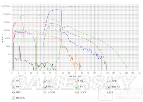 青金石矿石则表现出不同的生成模式,其数量在13至14层达到峰值后逐渐回落。这种独特的生成规律使得青金石矿石在主世界中的分布与其他矿石有所不同。
