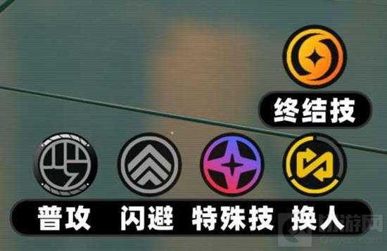 右下角的操作区包含五个主要按钮,用于执行普通攻击、闪避、特殊技等操作。