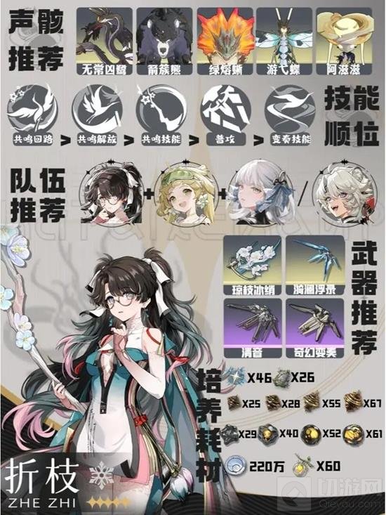折枝,作为《鸣潮》中一位多才多艺的后台副C角色,以其快速的延奏技能和长时间的大招覆盖著称。折枝的装备推荐什么?应该怎么养成和配队?下面将带来详细的解答。无论是作为队伍中的辅助输出还是配合其他角色形成连携攻击,折枝都能展现出其独特魅力。以下是针对折枝的全面养成指南,包括声骸选择、技能升级顺序、队伍搭配建议及武器推荐等方面的内容。
