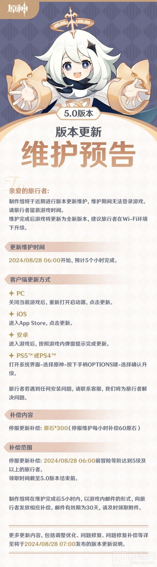 如果旅行者的设备存储空间较为紧张,可以为资源包预留空间(约16~23GB),等待至版本更新维护期间或之后直接进行更新。此时因为旧版数据可以舍弃掉一部分,所以下载时不用留30GB以上的空间。下面是游戏的官方公告。