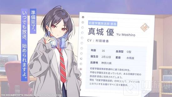 移动端养成系游戏《学园偶像大师》新角色真城优登场,其声音由知名声优村田绫香演绎。自从加入游戏以来,真城优已经在网络广播剧《初星学园广播部》以及声音剧中占据了重要的位置。