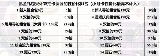 按照抽卡性价比排序。请谨慎氪金不要上头