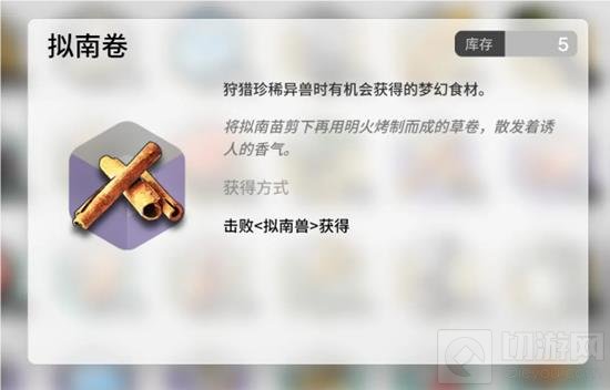 8.拟南卷:新出的食材,稀有,用于与“清水”和其他食材制作高级食品;制作能量饮料。可通过击败拟南兽获得。
