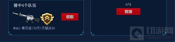 猜中4个队伍,M4A1-青花瓷(30天)天赋点80
