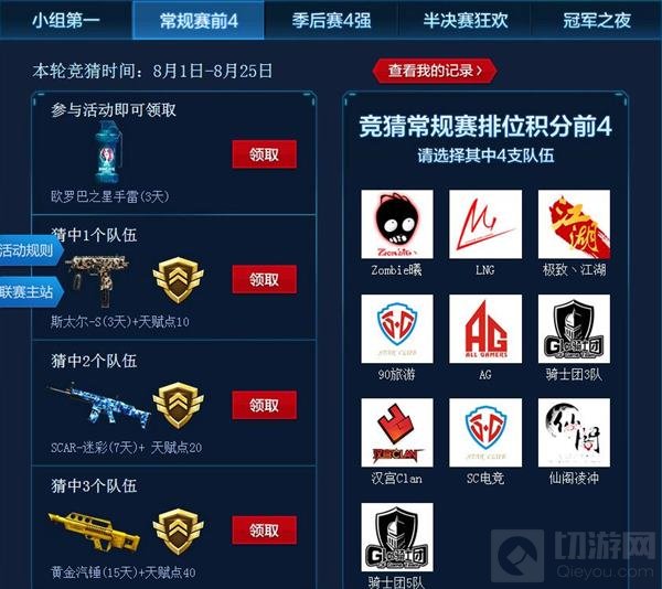 猜中2个队伍,SCAR-迷彩(7天)+ 天赋点20