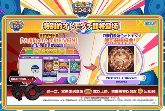 原本需要打到Legend等级才能解锁的曲目《VeRForTe αRtE:VEiN》将会在SSS 5等级就会出现(如果没有解锁的话则每pc只能打一把)(不是很懂他们这个图为什么有日版ui和繁简混合的介绍)。
