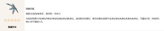 主要特性:提升共鸣效率,并通过普攻伤害获得额外的攻击加成。