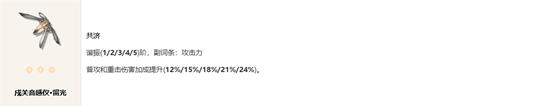 主要特性:提供稳定的普攻和重击伤害加成。