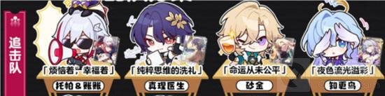 真理医生+托帕+砂金+阮·梅/知更鸟:这是一个典型的追击队配置,真理医生和托帕作为核心输出,砂金和知更鸟提供增伤与拉条支持。