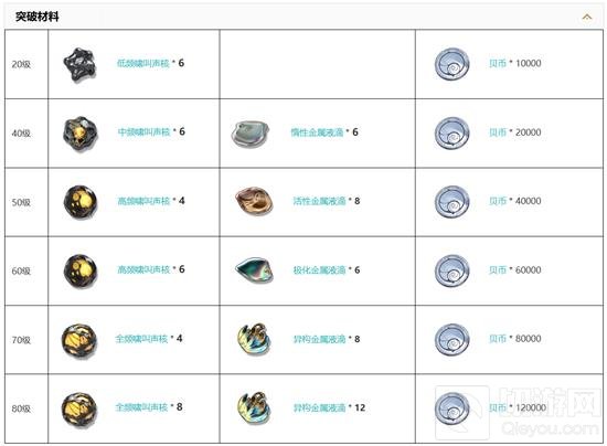 具体来说,赫奕流明的"谐振"技能可以随着攻击次数的增加而累积"灼羽"层数,每0.5秒获得1层,施放共鸣技能时额外获得5层。每层"灼羽"可以提升共鸣技能的伤害加成,最高可叠加至14层,12秒后若未达到14层则清空全部层数。这使得赫奕流明在战斗中能够提供持续的伤害输出和爆发力。武器的突破材料需求如下: