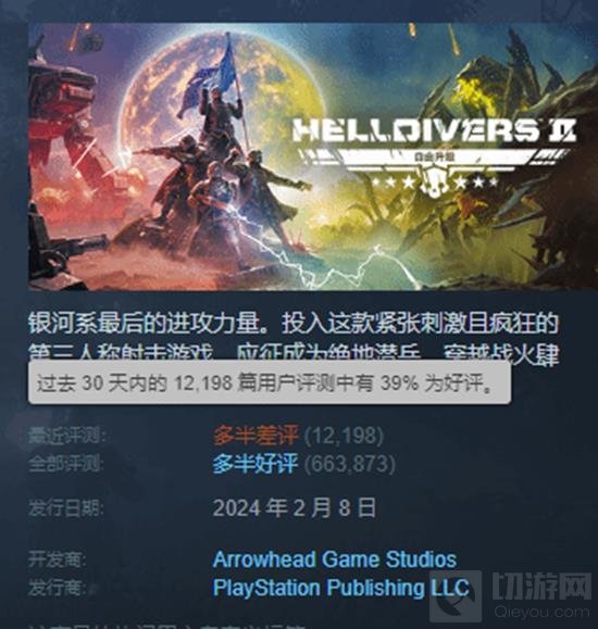 玩家评测:在Steam平台上,《地狱潜者2》近期收到了超过1.2万玩家的评测,其中61%为差评,这反映出玩家对游戏现状的普遍不满。