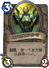 由于是随机BUFF,所以身材优于破碎残阳祭司。当然破碎残阳现在已经没人带了就是。