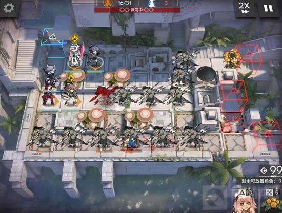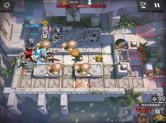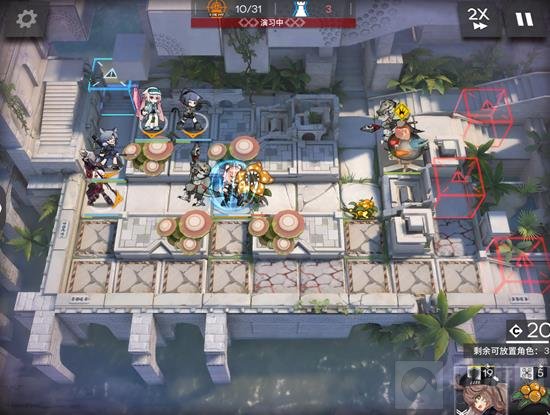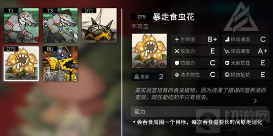 如图所示,开局按照先锋>狙击>近卫>医疗的顺序部署,待食人花走到如图所示的位置之后放工具人给它吃。如果食人花被提前打掉,则把工具人撤回来待命。
