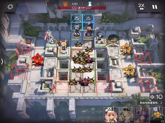 本关的敌人中,红酸液源石虫的威胁较大,需要利用地形进行清理。