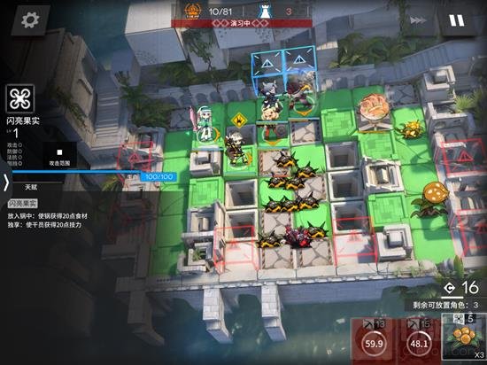 整个过程中会掉落若干闪亮果实,记得如果特种角色的技能回转不过来了就喂一个。右下角的食人花等狙击角色冷却好了就放在能打到它的较远高台处清理掉。