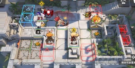 如图所示,开局之后按此站位摆好狙击,最好是狙击因为要清理后面的无人机。但是推荐队伍里留一两个法伤角色,用来对付5000血量4000防御90法抗的大螃蟹。可以开饭的时候就记得立刻开锅。