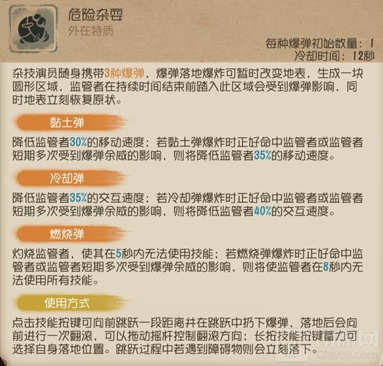 以上就是第五人格杂技演员怎么玩的内容了,如果你想成为第五人格高手,就请关注切游网,小编带你看更多关于第五人格的相关内容!