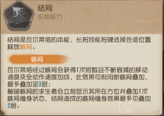 注意事项:蛛网缠身效果随时间消失,求生者也可以主动解除。