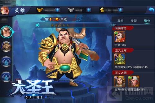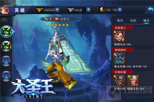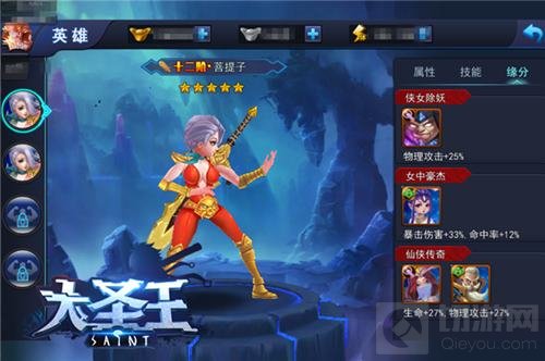 在各个英雄武将的属性中,都有该英雄武将的缘分的介绍。不同的是,主角大圣的缘分为特殊缘分,同上阵英雄武将的星级品质以及阶级挂钩。缘分属性在英雄武将上阵、助阵或者放置在缘分栏时激活。新手玩家往往会忽视缘分栏的存在。