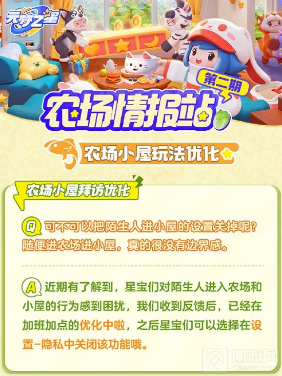 拜访功能设置升级:玩家将能够更便捷地访问朋友的小屋,并且可能还会有新的互动方式。
