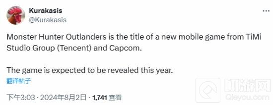 英文名预测:此前爆料人Kurakasis表示,本作的英文名可能为《Monster Hunter Outlanders》,预计今年内正式官宣。