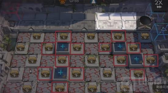 如图所示,在右上角想方设法拦住源石虫不让进蓝门即可。下面的宝箱中,回血的格子边上全是宝箱怪,可以不开也可以找个工具人(可以带奶,稳一点)用来开宝箱(开后获得奇怪的肉,可以放锅里增加食材用)。而其他地块开出来的都是普通宝箱。开宝箱的条件很简单,只要周围挨着的格子有物品即可。比如不会掉血的某些召唤物,这些用来扛地火(热泵通道)伤害的性价比高于用工具人干员放那扛伤害。本关主要难点是开局,推荐用挡二先锋进行开局源石虫的阻拦。
