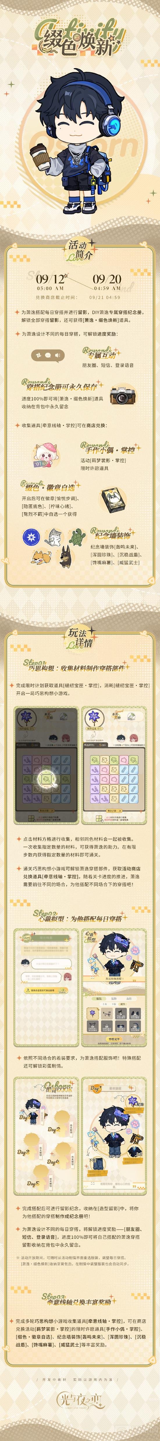 搭配每日穿搭:玩家需要为角色萧逸搭配每日的服装,并进行留影。通过DIY专属穿搭纪念册,解锁全部穿搭留影,可以获得特殊道具【萧逸・缀色焕新】。