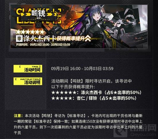 活动期间,【鸣铳】限时寻访将开启,以下干员的获得概率将提升: