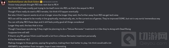 Golem解释说:“我理解许多人认为《生化危机5》是下一个重制,因为《生化危机4》已经重制了。然而,我认为《生化危机4:重制版》主要只是为了更好地与《生化危机5》相关联,因为后者是《生化危机4》的续作。