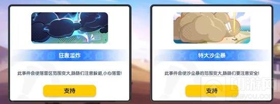 巨人之战事件可以让使用了变大到的成长增加200体力点,能够抵挡大量伤害。再就是影响地图机制的狂轰滥炸事件和特大沙尘暴事件,这两个事件能够让落雷区和沙尘暴的范围变大,常常们一定要注意安全。那这些时间会在每局游戏开始前随机出现两个,并由大家投票决定。