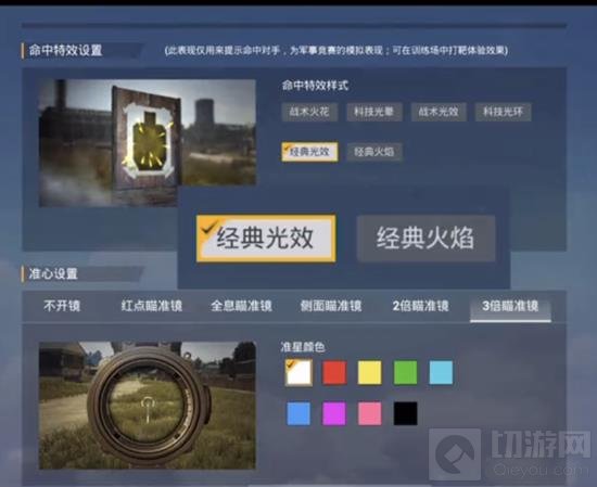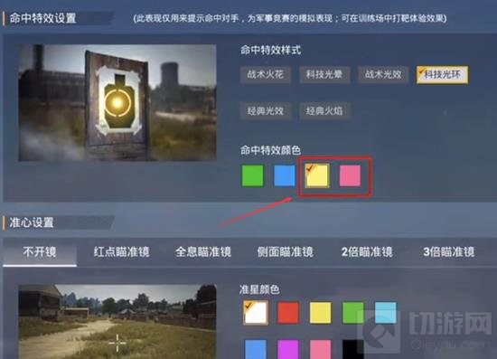 同时,在选择颜色方面,这边小编推荐的是黄色,因为与地图环境相比,个人认为黄色的效果会更好,打击上反馈也更清楚。