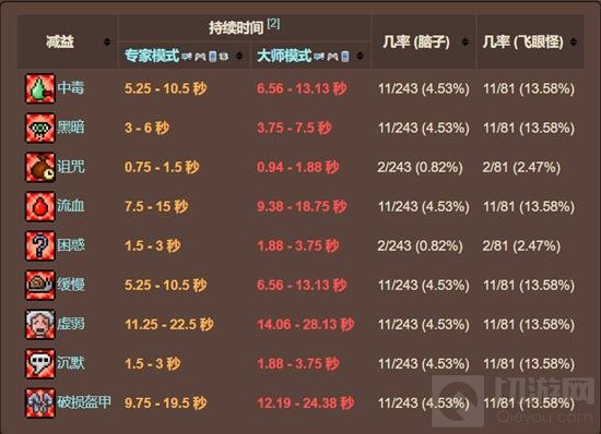 专家和大师模式下,克苏鲁之脑和飞眼怪造成的减益效果持续时间延长。
