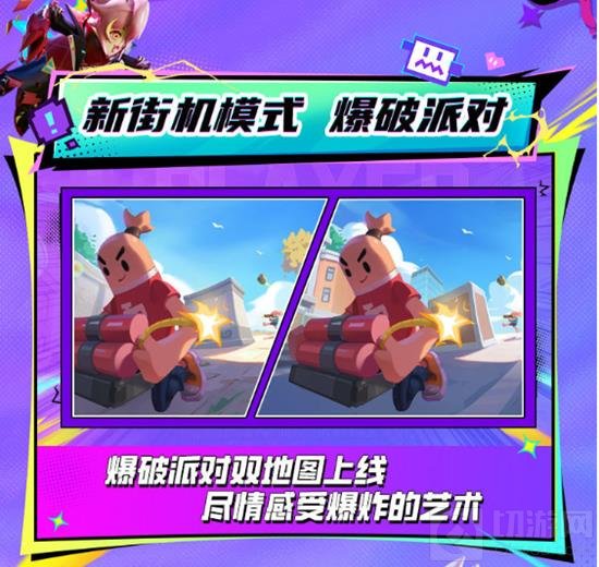 2、赛季新街机模式:爆破派对。经典好玩的模式加入街机派对。探索「天空秘境」与「决斗都市」两张地图,加入派对,感受爆炸的艺术!