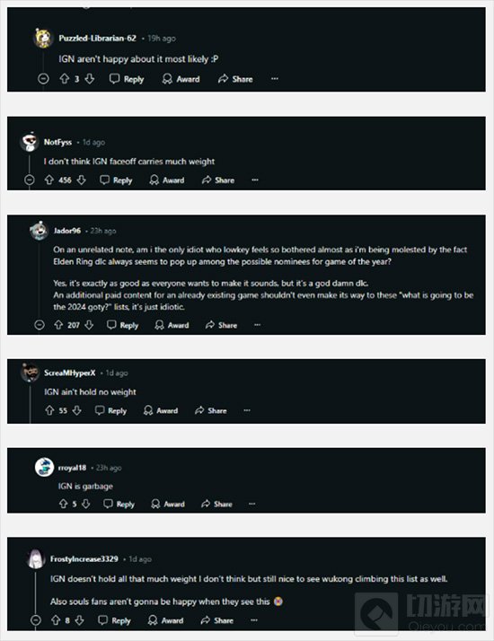 此外,也有玩家对于《艾尔登法环 黄金树幽影》能入选名单感到意外,因为正常情况下,DLC作品并不能算入“年度游戏”的评选范围内。