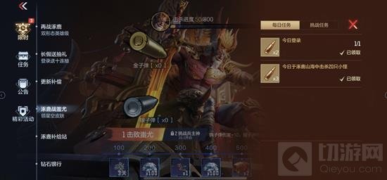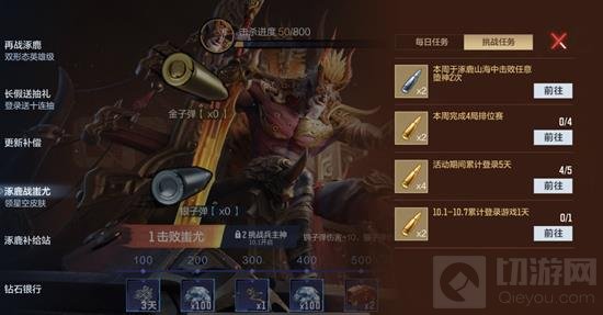 活动规则也非常简单,通过完成常规和挑战任务获取子弹,消耗子弹获取伤害值,伤害值累计到对应值即可获取奖励。
