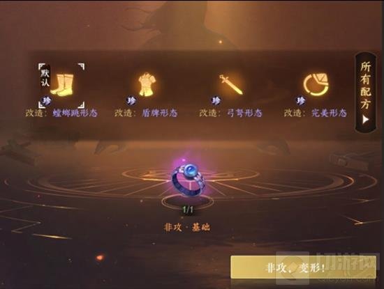 非攻系列装备的最大亮点,在于其多样化的形态变换。从基础的非攻戒指开始,您可以一步步解锁后续的各种形态,包括鞋、盾、弩等,每一种形态都拥有独特的功能与效果。