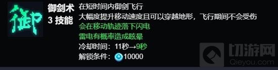 御剑术:这个技能让玩家在短时间内御剑飞行,大幅提升移动速度并穿越地形,飞行期间玩家不会受到伤害。技能冷却时间为11秒,五星升级后缩短至9秒。