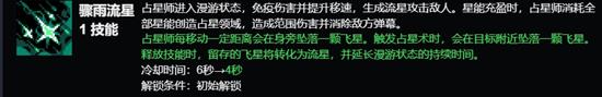 骤雨流星:这个技能可以让占星师进入漫游状态,免疫伤害并提升移动速度,同时生成流星攻击敌人。如果星能充盈,占星师会消耗全部星能创造占星领域,造成范围伤害并消除敌方弹幕。
