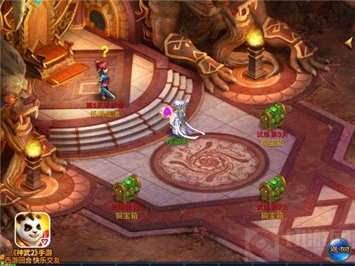 描述:前往傲来国神庙迎接试练的挑战吧!试练分为普通模式和困难模式,一共10关,每次成功过关都可获得大量铜币奖励,关卡越高奖励越丰厚,更有可能获得变身卡道具。