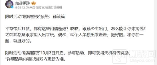 如鸢手游公测以来,热度不减,正逢国庆假期来临,官方也预热了国庆限时活动——“燃犀照夜”孙策篇的预热。我们来一起看看吧。