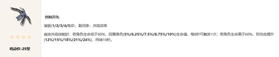 四星武器「鸣动仪-25型」:该武器能够为守岸人提供基础的治疗加成和协奏能量回复效果,适合作为过渡装备使用。