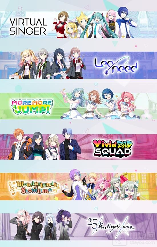 游戏的各团体翻译还是沿用了港台服的翻译,分别为VIRTUAL SINGER、Leo/need、MORE MORE JUMP!、Vivid BAD SQUAD、Wonderlands & Showtime、25点,Nightcord见。当年传播开的各个难绷译名并未被采用。