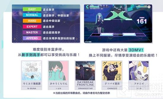 另外值得一提的是,国服的官网直接标明了有Append难度,且有相对于日服来说实装相对不是很晚的歌曲。