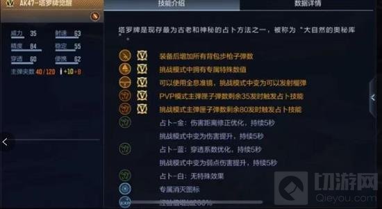 首先我们来看看AK47-塔罗牌觉醒的技能面板,从这满屏的技能属性上就能看出,该款枪械作为白嫖武器,确实有很强的面板信息,单单这点来看官方策划就很良心了。我们来说说这把武器在游戏中的表现。