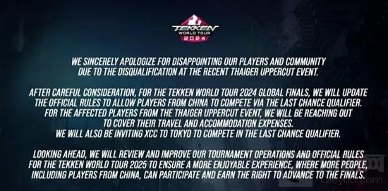 万代南梦宫宣布将修改《铁拳》世界巡回赛2024年全球总决赛的官方规则,允许中国玩家参加最终机会资格赛。这一决定是为了确保所有玩家都有平等的机会参与比赛。