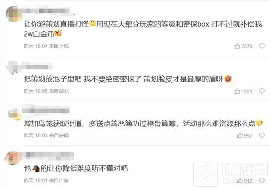 很多玩家表示,游戏活动难度太高,卡关严重,而且不仅是活动卡关,就连剧情推近也卡关严重。除此还有问题:密探爆率太低,培养资源太少,以至于玩家不能很好的通关,很多玩家愤怒表示,我旧活动都打不过你还敢上新的???