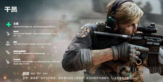 在《三角洲行动》中,罗伊·斯米(代号蜂医)是一名以支援为主要职能的特战干员。曾效力于特种部队支援部门的他,凭借其专业的医疗支援能力和出色的战场分割技术,迅速晋升为正式特战队员。蜂医不仅能够有效救援倒地的队友,恢复其生命值,还能通过战术装备为整个团队创造有利的战场态势,确保队友们始终处于最佳战斗状态。