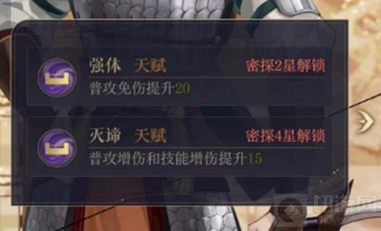 解析:严颜天赋主要是针对己身的增强,分别是降低对自己伤害和提升攻击,但数值都不高,对于一个白卡来说算是均衡了,这也意味着严颜的上限并不高。