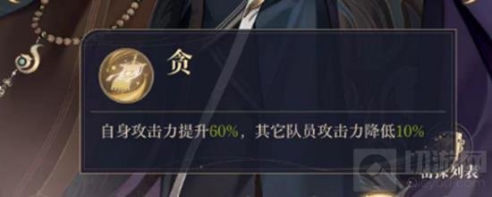 队长技能:贪-自身攻击力提升60%,其它队员攻击力降低10%。