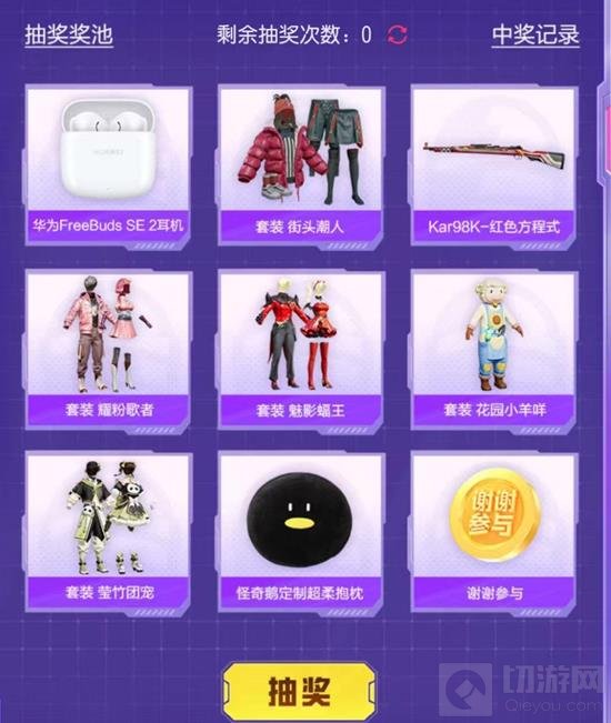 活动期间,玩家们在任务区域完成点赞和平精英视频、分享和平精英视频等指定任务,每完成一项任务即可获得1次抽奖机会!发布不同的和平精英“最秀老铁”视频,更可获得3次抽奖机会!华为FreeBuds SE 2耳机、套装-耀粉歌者、套装-魅影蝠王、套装-花园小羊咩、套装-莹竹团宠等豪礼等你来抽!